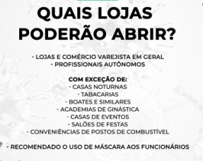Poderão reabrir lojas, comércio varejista e autônomos.
