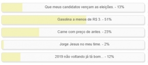 "Carne com preço de antes" teve 23% e "que meus candidatos vençam as eleições" 13%.