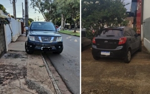 Estacionar sobre a calçada nã pode. Camioneta, na av. Comendador Norberto Marcondes, e carro na av. Goioerê estão errados.