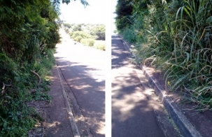 O mato invadiu a calçada na Avenida das Torres, no jardim Cidade Nova.