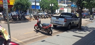 "Moto estacionada em vaga para carros. Detalhe: o estacionamento exclusivo para motos ficava muito longe: cinco metros de distância".