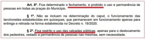 Também destaca que as calçadas são só para deslocamentos e é vedada a permanência de pessoas nelas "sem necessidade".