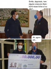 Os cliques são desta sexta-feira, em Mamborê. O deputado estadual Soldado Adriano José se reuniu com o prefeito Ricardo Radomski e anunciou R$ 80 mil para a Saúde. O deputado também esteve em Campo Mourão, onde repassou R$ 75 mil para prefeitura, fruto de emenda do deputado federal Sargento Fahur. Não faltaram os "checões" para as fotos...
