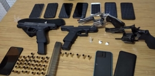 Em que situação a Polícia Militar de Campo Mourão apreendeu, sábado à noite, essas armas e projéteis usados?