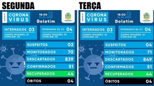 Não houve nenhum caso confirmado de covid-19 nesta terça-feira em Campo Mourão. A cidade segue com 51 confirmações, 44 recuperações e quatro óbitos. Sem alterações também no número de leitos ocupados - três na enfermaria e quatro na UTI. O que aumentou foi o número de casos suspeitos, de dois para quatro.