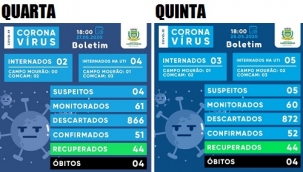 Mais um caso de covid-19 foi confirmado nesta quinta-feira em Campo Mourão. Agora são 52. Já o número de mourãoenses internados subiu de um para três - entrou mais um na enfermaria e um na UTI. Ao todo, cinco leitos da unidade de terapia intensiva estão ocupados. Na enfermaria a ocupação é de três leitos. Os casos suspeitos subiram de quatro para cinco.