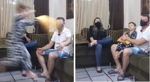 Leandro da Farmácia (Cidadania), prefeito de Araruna, ao encerrar a live que fez, de casa, ao lado da secretária de Ação Social, Fernanda Lourenço, que teve a "participação especial" de filhos do prefeito; no Facebook, nesta quinta-feira.