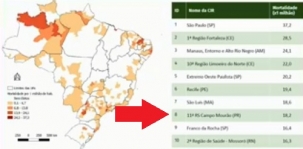 Com 18,2 mortes para cada um milhão de habitantes, a região de Campo Mourão é a oitava do Brasil em mortes por Covid-19.