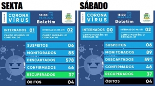 O boletim manteve os mesmos números de casos confirmados (46), suspeitos (6), recuperados (37) e óbitos (4).