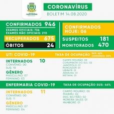 Campo Mourão segue na "gangorra" no número de confirmações de casos de covid-19. Nesta sexta-feira foi o dia de baixa, com 6. O total foi a 946. Por outro lado, houve 25 recuperados e eles agora são 675. Assim, caiu para 246 os mourãoenses com o vírus ativo no momento.