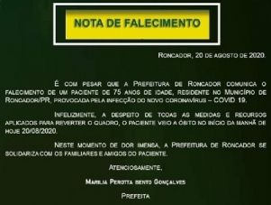 Vinte cidades da região já registraram mortes por coronavírus. A 20ª a entrar na lista foi Roncador. O município confirmou nesta quinta-feira a morte de um morador de 75 anos, que estava na Santa Casa de Campo Mourão desde o último dia 4.