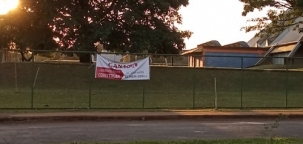 Pode isso Arnaldo? Faixa de propaganda particular em edifício público, no caso o Caic de Campo Mourão?