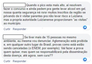 O anúncio das provas do concurso da prefeitura de Luiziana para o próximo dia 19 rendeu críticas nas redes sociais. "Isso é um absurdo! A prova em plena pandemia", protestou uma usuária na página do município. "Não consigo entender, coronavírus correndo solto e vão fazer concurso?". frisou outra. "Coronavírus agradece", concluiu uma terceira.