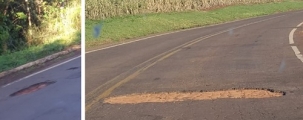 Estado da rodovia entre Janiópolis e Boa Esperança, Não há acostamento e os veículos desviam pela contra-mão. O risco de acidentes está muito alto.