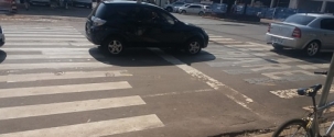 Coisas do trânsito de Campo Mourão: duas faixas no mesmo local - esquina da rua Santa Catarina com a av. Capitão Índio Bandeira.