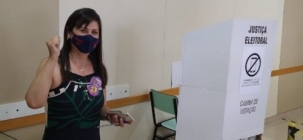 A candidata a prefeita de Campo Mourão pelo PT, Nivalda Sguissardi, votou pouco depois das 11h, no Santa Cruz,