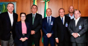 Lideranças do setor produtivo se reuniram na terça-feira, em Brasília, com o presidente Jair Bolsonaro. Entre eles, o presidente executivo da Coamo, Airton Galinari, e o diretor comercial da cooperativa, Rogério Tramin de Melo. A ministra da agricultura, Tereza Cristina, também participou. Segundo Galinari, Bolsonaro quis saber a situação da produção brasileira e da oferta e demanda da soja e seus derivados no mercado mundial, além das perspectivas para o próximo ano.