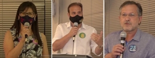Os três candidatos a prefeitos de Campo Mourão participaram nesta quarta-feira de reunião da Acicam. Ficaram lado a lado. Cada um pôde falar por 10 minutos. A ordem foi definida por sorteio, na hora, feito pelo presidente Ben Hur Berbet.