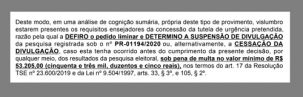 A decisão está em liminar do juiz eleitoral Fabrício Voltaré.
