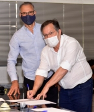 Tauillo Tezelli (Cidadania), prefeito de Campo Mourão, durante discurso na Acicam após assinar termo de compromisso com o Codecam. Ele está no terceiro mandato e vai tentar mais um; nesta sexta-feira.