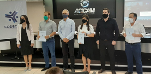 Os três pré-candidatos a prefeito de Campo Mourão estiveram na tarde desta sexta-feira na Acicam. Foram assinar o termo de compromisso com o Conselho de Desenvolvimento Econômico. Foi a primeira vez que Nivalda Sguissardi (PT), Rodrigo Salvadori (PP) e Tauillo Tezelli (CDN) estiveram juntos como pré-candidatos.