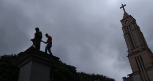 A imagem de São José, no pedestal em frente à Catedral de Campo Mourão ganhou companhia nesta quinta-feira. Era o operário que trabalhava na decoração de Natal. Tudo tem de ficar pronto até sábado, quando acontece o acendimento das luzes e a chegada oficial do Papai Noel à cidade.