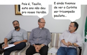 O prefeito de Campo Mourão, Tauillo Tezelli, visitou nesta quinta-feira o bispo d. Bruno Versari. Foi uma visitinha de cortesia. Tauillo falou dos projetos para a cidade e d. Bruno falou de projetos da igreja. Os dois são torcedores do Palmeiras. O padre Genivaldo Barbosa, vigário geral da diocese, acompanhou a visita.