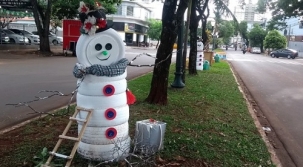 No Natal do ano passado Campo Mourão ganhou bonecos de neve feitos de madeira. Este ano os bonecos de neve são de pneus. Também mudou o endereço. Desta vez a iniciativa foi de comerciantes de uma quadra da av. Capitão Índio Bandeira. A decoração inclui ainda um Papai Noel "pneumático".