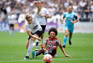 O Corinthians venceu o São Paulo por 3 a 0, neste sábado, e conquistou pela primeira vez o título de campeão paulista feminino. O jogo foi em Itaquera (no Morumbi tinha dado 1 a 0 pro Timão). E o que é que a gente tem a ver com isso? Repare ali no fundo da foto. Sim, a árbitra da decisão foi Edna Alves, de Goioerê.