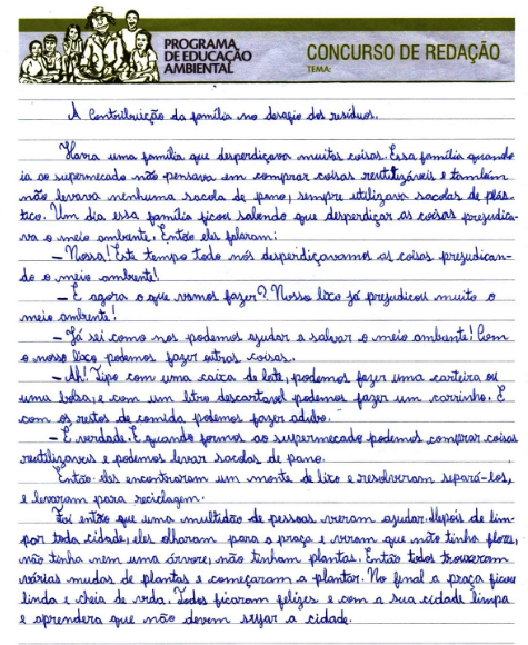 Yasmin G. F. Lobrianchi tem 10 anos e é aluna do quinto ano da escola municipal Caetano Munhoz da Rocha, na comuunidade rural de Alto Alegre, em Campo Mourão. Ela teve redação premiada em concuso nacional promovido pelo Programa de Eduicação Ambiental Campo Limpo. Concorreu com 240 mil alunos de 323 municípios do País. Vai receber a premiação no próximo dia 13, na prefeitura.