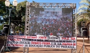A APP-Sindicato fez manifesto nesta quinta-feira em Campo Mourão para lembrar os seis anos do "massacre no Centro Cívico". Houve painel de fotos e discursos na praça São José, além de buzinaço em frente ao Núcleo de Educação. Segundo a APP, o massacre continua no atual governo com a falta de diálogo e tercerização de profissionais da Educação. "O governador mudou e a violência só aumentou" foi o lema da manifestação.