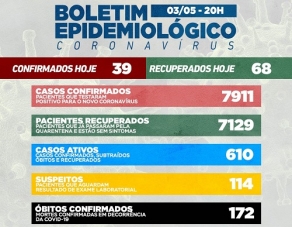 Campo Mourão teve mais 39 casos de covid-19 confirmados nesta segunda-feira. Os recuperados foram 68. O número de moradores com o vírus ativo caiu de 641 par 610, mas houve duas mortes (mulher de 38 anos e homem de 31). O índice de ocupação de leitos na ala covid aumentou - 100% na enfermaria, 91% na UTI SUS e 100% na UTI convênios.