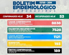 Campo Mourão teve 34 casos de covid-19 confirmados nesta segunda-feira. Os recuperados foram 53. O número de mourãoenses com o vírus ativo ficou em 1.121. Os casos suspeitos subiram para 193 e houve mais uma morte (agora são 21 este mês). Taxa de ocupação na ala covid: 100% na enfermaria, 104% na UTI SUS e 100% na UTI convênios.