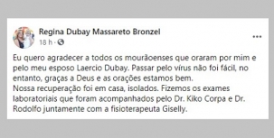 "Passar pelo vírus não foi fácil, no entanto, graças a Deus e as orações estamos bem".