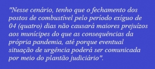 A juíza frisou que não viu ilegalidade no decreto e lembrou que o fechamento é por "período exíguo" (quatro dias).