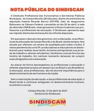 Sindicato dos Servidores Municipais de Campo Mourão, em "Nota pública" divulgada nesta quarta-feira em que repudia a fala do deputado federal Ricardo Barros (PP), que disse em entrevista à CNN Brasil que os professores não querem trabalhar e que estão causando danos às crianças por falta de aulas presenciais.