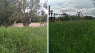 "Situação de descasa da pracinha do jardim Capricórnio. Falta pouco para o mato invadir a rua".