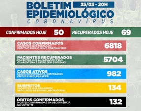 Completou um ano nesta quinta-feira que Campo Mourão teve o primeiro caso confirmado de covid-19. Agora já são 6.818, sendo 50 somente nesta quinta, quando também foram confirmadas mais duas mortes. Mas o número de mourãoenses com o vírus ativo vem caindo. Agora ficou abaixo de mil (982). Na ala covid, 63 pesssas estão internadas, sendo 34 na UTI, que segue lotada, sem vagas.