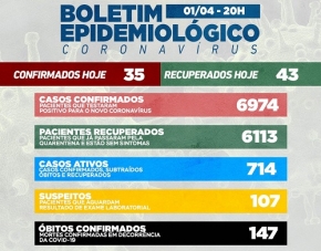 Regional - Mais 67 casos de covid-19 foram confirmados em 11 cidades da região. O total desde o início da pandemia foi a 19.866, com 414 mortes (houve o 30º óbito em Ubiratã, o 16º em Araruna e o oitavo em Boa Esperança).