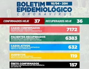 Trinta e sete novos casos de covid-19 foram confirmados neste sábado em Campo Mourão. Houve 36 recuperados. Também foi confirmada mais uma morte, a 12ª de abril (157 desde o inicio da pandemia). Na ala covid, 50 pessoas estão internadas, sendo 27 na UTI. Taxa de ocupação: 84% na enfermaria, 91% na UTI SUS e 50% na UTI convênios.
