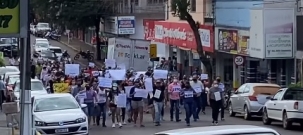 O grupo se reuniu em frente ao fórum e saiu em passeata pelas ruas da cidade.