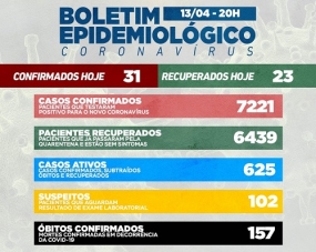 Mais 31 novos casos de covid-19 foram confirmados nesta terça-feira em Campo Mourão. Os recuperados foram 23. Assim, os casos ativos subiram para 625. Os casos suspeitos subiram de 36 para 102. De positivo, o terceiro dia sem mortes. E uma pequena queda nas taxas de ocupação nos leitos públicos: 78% na enfermaria, 87% na UTI SUS. Na UTI convênios subiu para 60%.