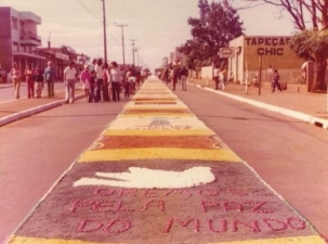 A página "Campo Mourão D", no Facebook, trouxe uma fotos das antigas da avenida enfeitada para o Corpus Christi. Essa é a av. Manoel Mendes de Camargo (olha a tapeçaria Chic ao fundo!). Este ano, por conta pandemia, nada de procissões ou tapetes pelas ruas. A data será marcada por uma missa na Catedral São José com a presença de todos os padres do Decanato. Será às 8h e quem quiser pode acompanhar pelas redes sociais da diocese.