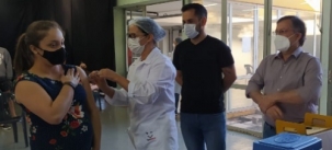 Pela primeira vez, no feriado de quinta-feira, Campo Mourão aplicou vacinas da Pfizer contra a covid. Foi para puérperas e gestantes. Antes só vinham sendo usadas a Coronavac e a Astrazeneca. Até o prefeito Tauillo Tezelli foi acompanhar a estreia do novo imunizante. O município recebeu 1.170 doses da Pfizer.