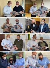 Nas fotos, conferem o jornal os prefeitos Ricardo Radomski (Mamborê), Joel Buscariol (Boa Esperança), Fábio D"Alécio (Ubiratã), Edenílson Miliossi (Barbosa Ferraz), Wilson Tureck (Luiziana), Same Saab (Iretama), Vivaldo Lessa (Roncador) e Airton Agnolin (Nova Cantu).