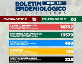 Campo Mourão confirmou mais 15 casos de covid-19 nesta terça-feira, com três recuperados. O número de moradores com o vírus ativo subiu para 488. Os suspeitos também subiram de 87 para 136. Não houve mortes. A taxa de ocupação de leitos ficou em 73% na enfermaria, 54% na UTI SUS e 10% na UTI convênios.