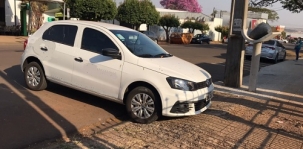 No centro de Campo Mourão, carro estaciona atravessado em frente a guia rebaixada. Jeitinho para não pagar a Zona Azul?