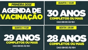 Campo Mourão vai vacinar contra covid-19, esta semana, moradores com até 28 anos de idade. Começa nesta quarta-feira, com quem tem 30 anos. Na quinta baixa para 29 anos e na sexta será a vez dos "28". Sempre das 8h30 às 16h, no mesmo local - Casa da Cultura e Unespar.