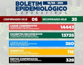 Campo Mourão teve seis casos de covid-19 confirmados nesta segunda-feira e 35 recuperados. Com isso, o número de moradores com o vírus ativo caiu para 380. Foi confirmada mais uma morte e agora são sete em agosto. A taxa de ocupação de leitos está em 31% na enfermaria, 58% na UTI SUS e 0% na UTI convênios, que voltou a ficar vazia.
