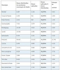 Dezesses municípios do Estado aplicaram menos de 60% das doses recebidas.